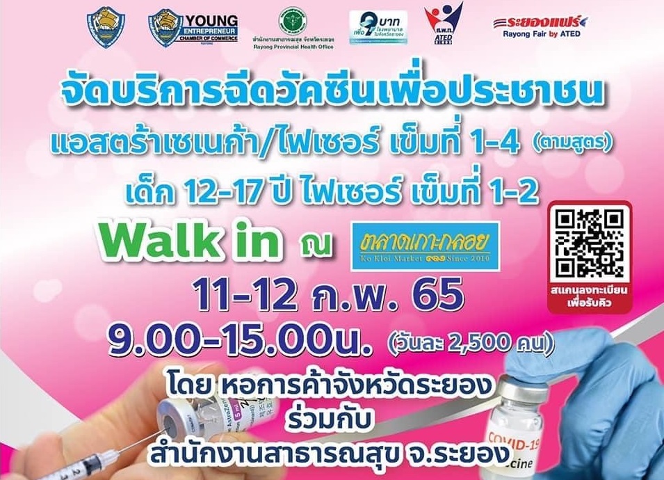 จนท.กลุ่มงานฯ ร่วมกับ สำนักงานสาธารณสุขจังหวัดระยองและหอการค้าจังหวัดระยอง ออกบริการฉีดวัคซีนป้องกันโรคโควิด19 ณ ตลาดน้ำเกาะกลอย ผู้สนใจ สามารถ walkin มาได้เลย