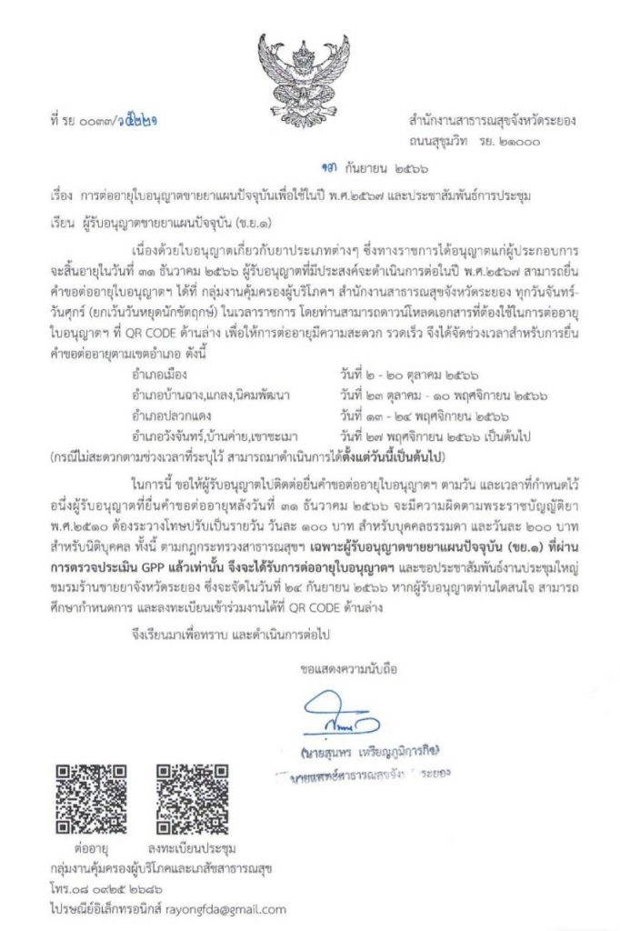 การต่ออายุร้านขายยาแผนปัจจุบัน ขอจัดช่วงเวลา เพื่อความสะดวกรวดเร็วในการให้บริการ